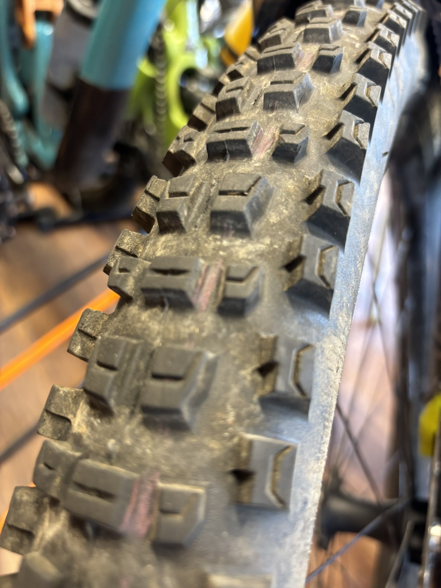 Shredda Frontはもう潔く29x2.5 Gravity Pro/ULTRASOFTの1ラインナップのみ。潔いですがそれでいいとおもいます。これを必要とする人はこの組み合わせでしか使いません。Shredda Rearはマレット運用も考えて27.5がありますね。高いノブと広く空いたトレッドパターンからウェット、マッド向けかと思われますが開発側の意図としてeMTBに向けた設計でもあると聞きました。