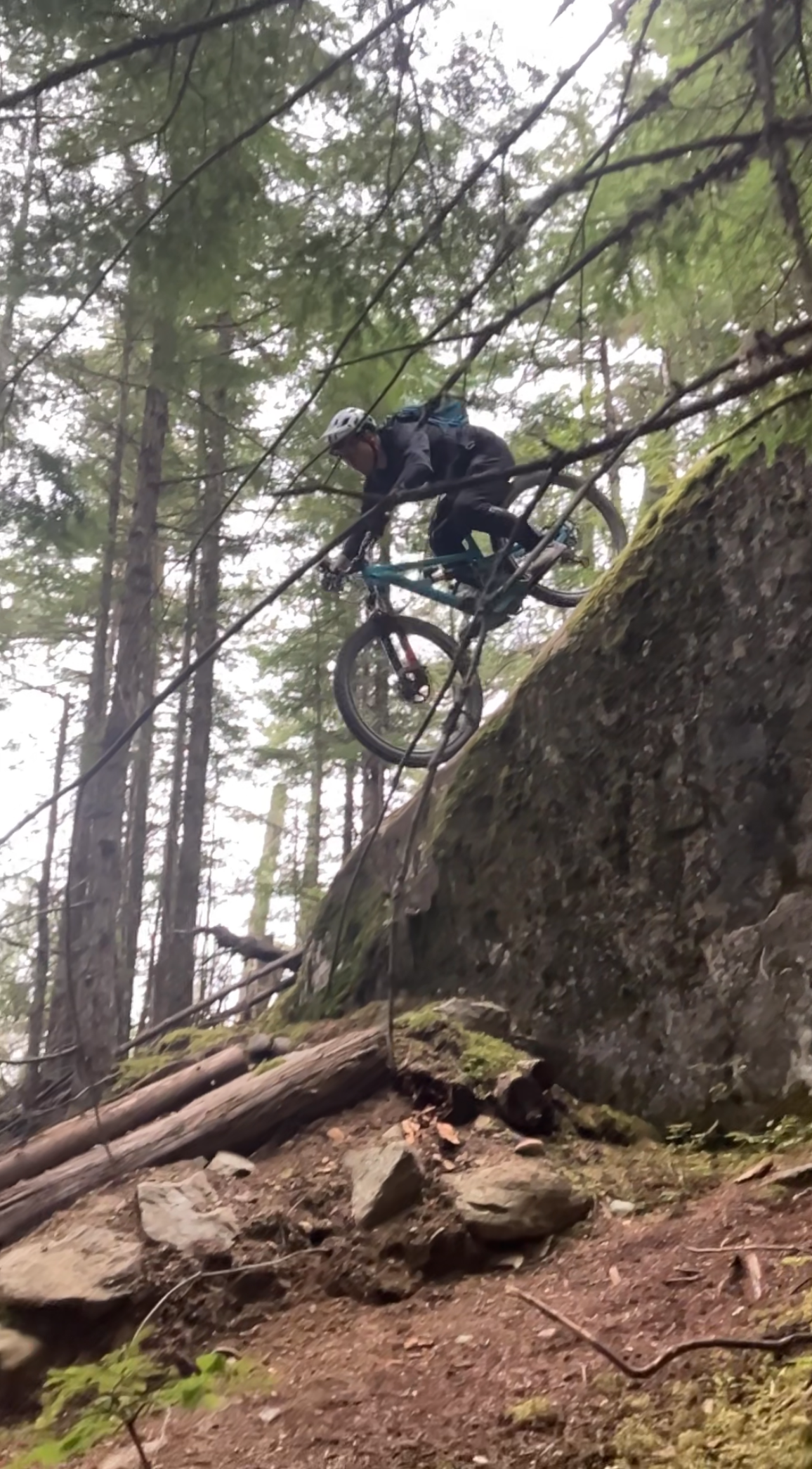 例えば上から覗き込んで木の根っこや岩の段差が斜めに走るスティープな下り。転倒したらどうしようと躊躇するような場面でもこのタイヤならハンドルを捕られることなくまっすぐ降りられます。バンピーな路面でもタイヤが弾かれません。当然乗り心地も良い。